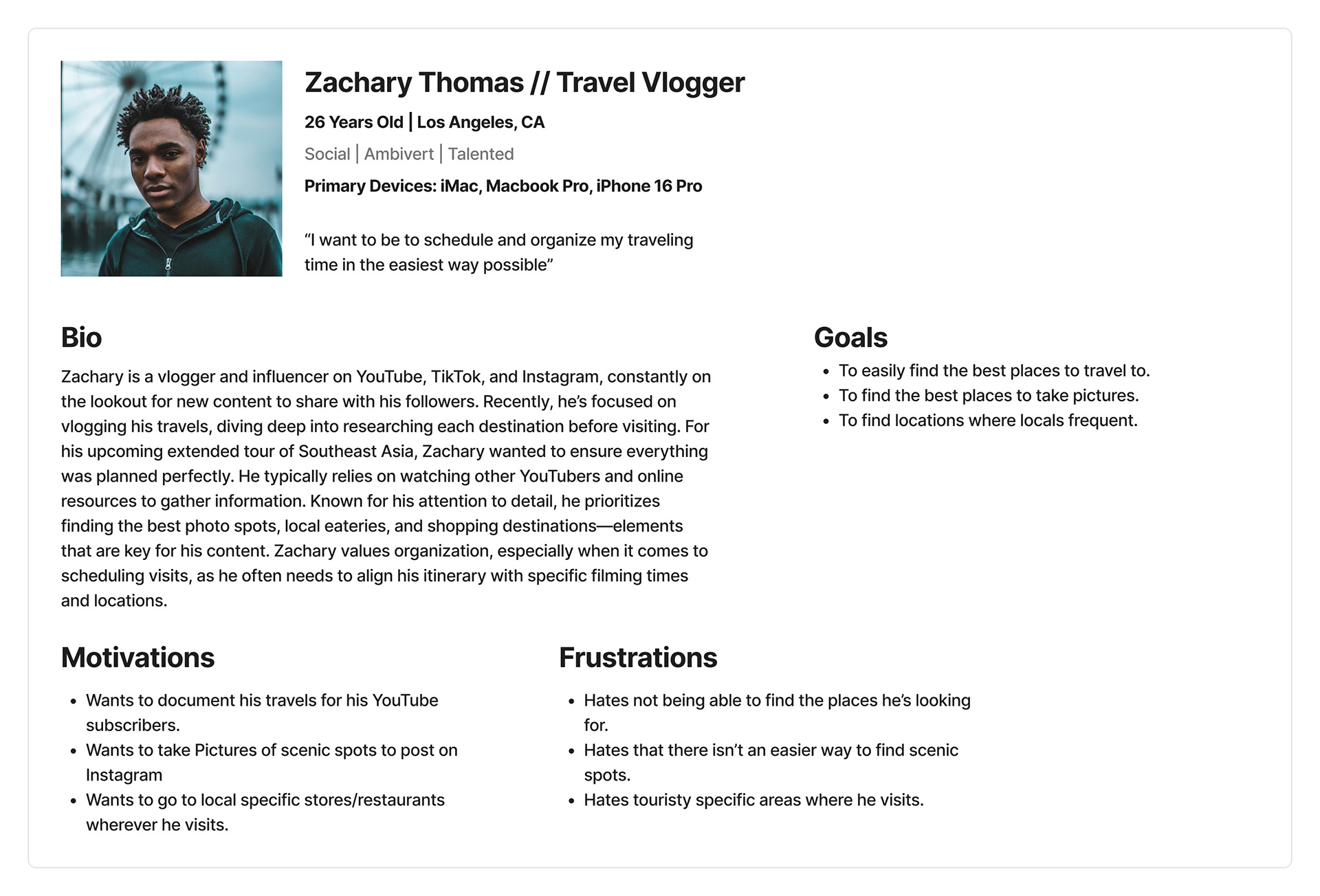 Before I could start designing PocketGuide, I needed to understand how travelers approach their trips and what problems they encounter while traveling. I wanted to know how people plan their trips, what they prioritize once they arrive, and what tools they currently rely on. This information was critical for me to ensure that the app I was designing would truly serve its users and fill the gaps left by existing solutions.